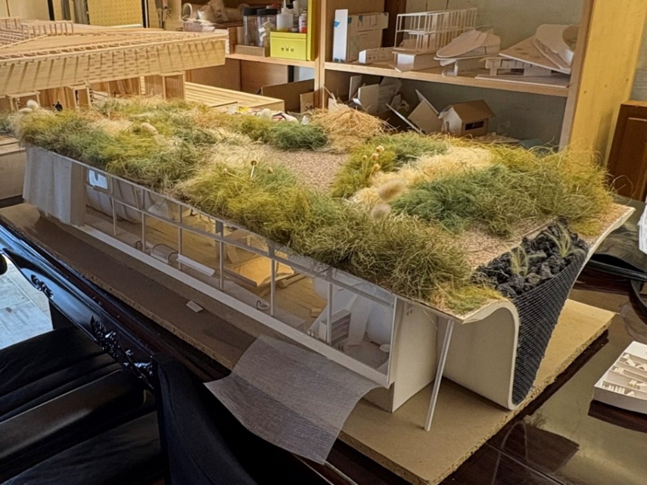 事務所に置かれていた「土かまくらの家」(計画案)の模型(写真:宮沢洋)