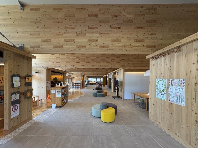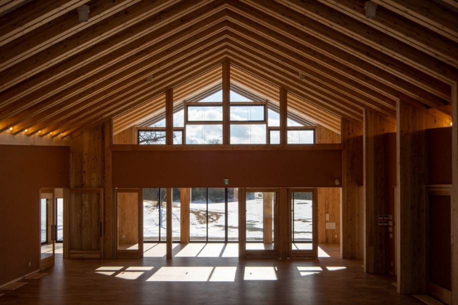 「きとね」(みなみあいづ森と木の情報・活動ステーション)。2022年竣工。設計:福島県建築設計協同組合(担当事務所:はりゅうウッドスタジオ)、施工:芳賀沼製作。はりゅうウッドスタジオの事務所から車で15分ほどのところにある