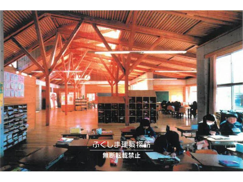 敷地面積の中央に建築されたRC造2階建ての校舎は、自然の傾斜を利用し全体を楕円形の通路で結んだ特徴ある校舎となっている。南側に学年棟、北側に特別教室や職員室等を配置し、屋根は林の中に建設したため雨樋をなくしステンレス葺としている。校舎に入ると外観と異なり木のぬくもりを感じ、子どもたちに落ち着きと安心感を与え、教室棟は軸組を現わにして梁を支える柱は、森の木をイメージしたもので施設そのものを教材化している。